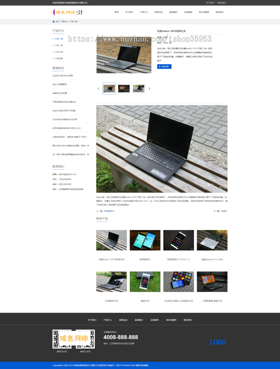 2、实际效果非常的酷炫,非常简约空气高档,模版简易,所有已数据信息启用,只需后台管理改动栏目名称就可以