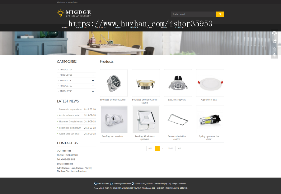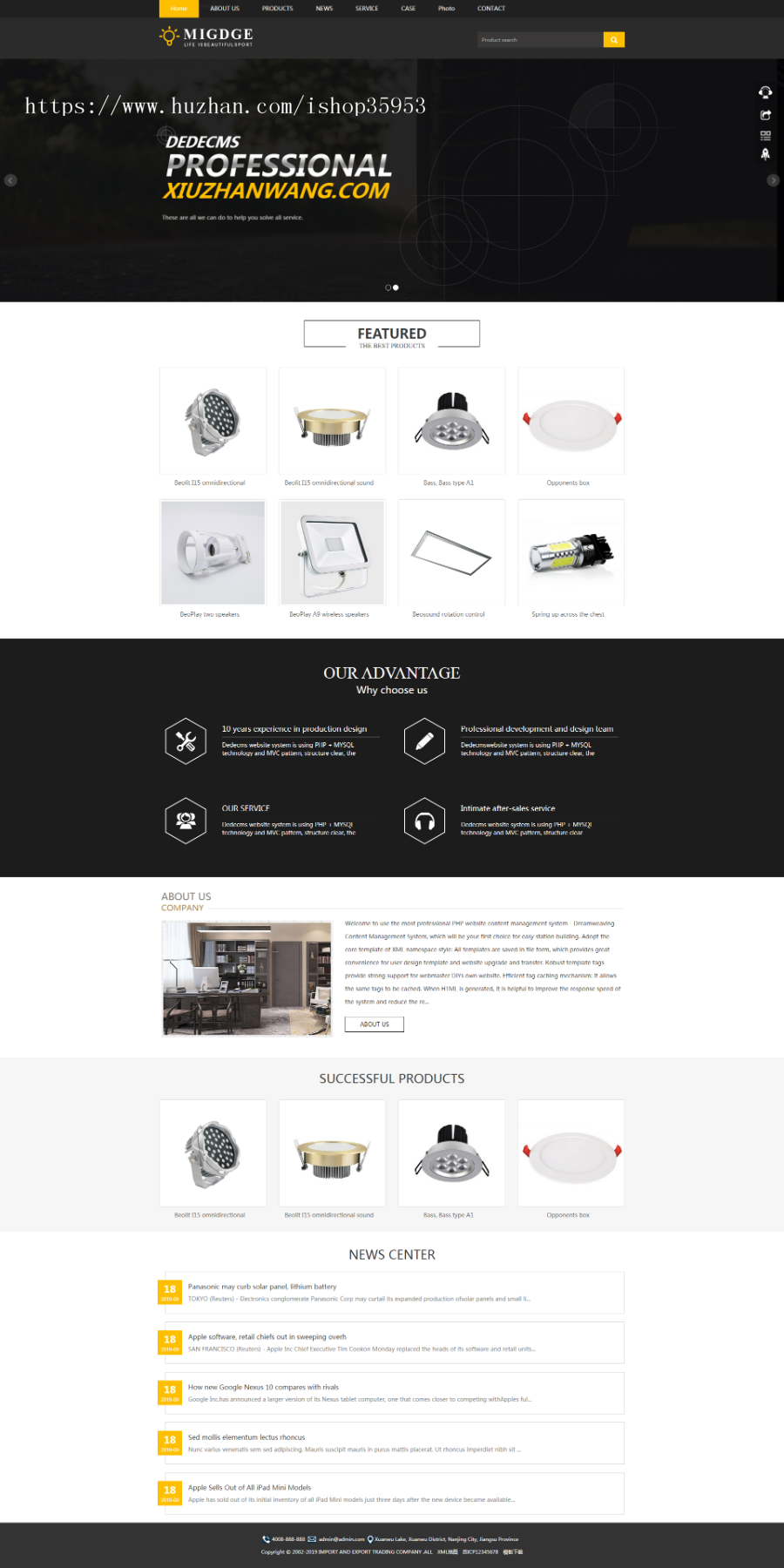 2、实际效果非常的酷炫,非常简约空气高档,模版简易,所有已数据信息启用,只需后台管理改动栏目名称就可以