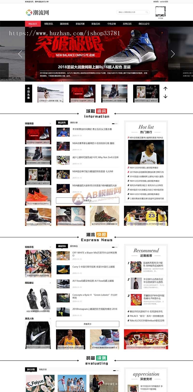 模版名字:(带手机安卓版数据库同步)潮牌鞋时尚资讯类网址织梦网站模板 篮球鞋运动产品新闻资讯网站网站源码下载