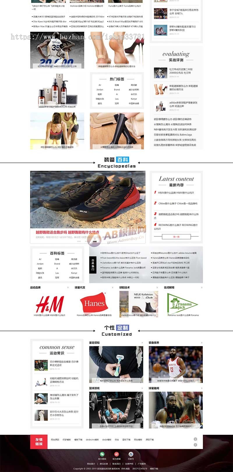3、适用时尚资讯织梦网站模板、篮球鞋武器装备网站源代码;