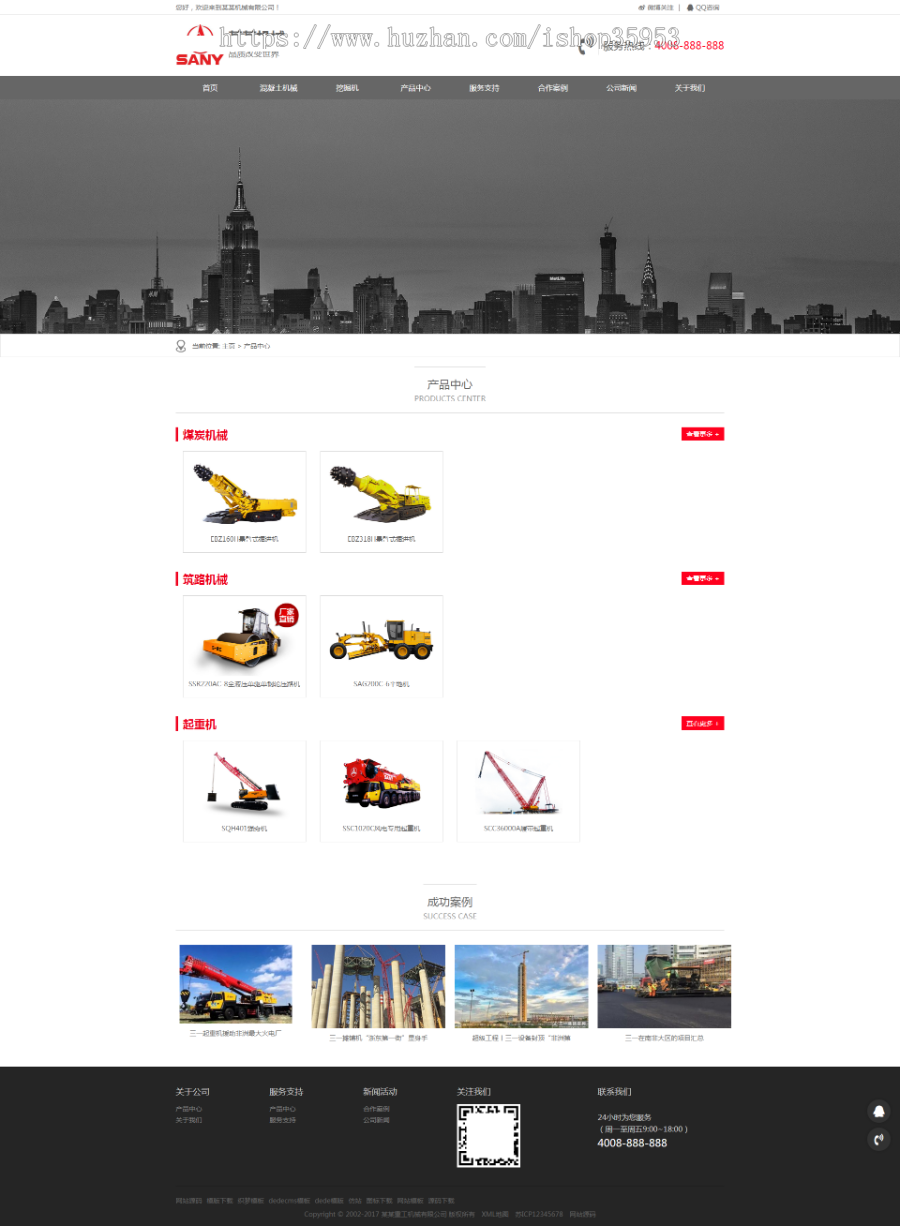 (响应式手机安卓版)HTML5响应式网站红深灰色重工机械类织梦网站模板 室外大中型工业设备网址