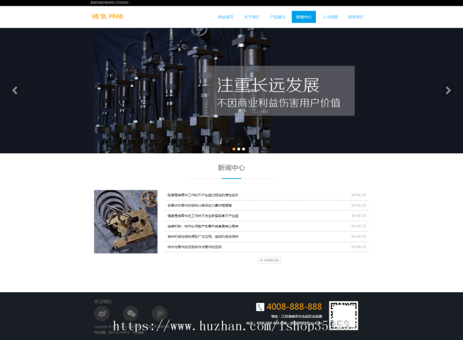 2、实际效果非常的酷炫,非常简约空气高档,模版简易,所有已数据信息启用,只需后台管理改动栏目名称就可以