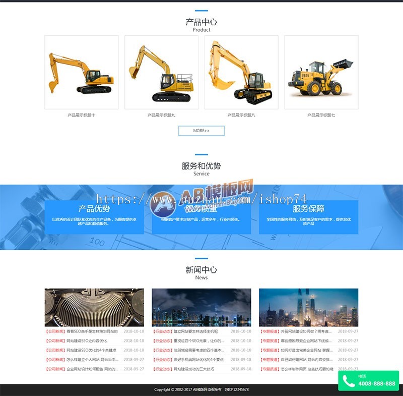 1、该模版由AB模板王网站站长亲身制做,编码环境整洁;2、实际效果非常的酷炫,非常简约空气高档,模版简易,所有已数据信息启用,只需后台管理改动栏目名称就可以 3、适用机械零部件网站源代码、五金机械织梦网站模板;4、网址手工制作DIV css,编码精减,主页排版设计干净整洁大气、合理布局、有利于SEO、图片配文字、静态数据HTML;5、主页和全局性再次干了全方位提升,便捷大伙儿无缝拼接应用;6、敬请看演试网站;