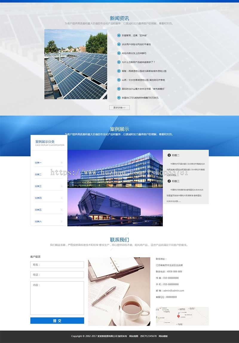2、实际效果非常的酷炫,非常简约空气高档,模版简易,所有已数据信息启用,只需后台管理改动栏目名称就可以