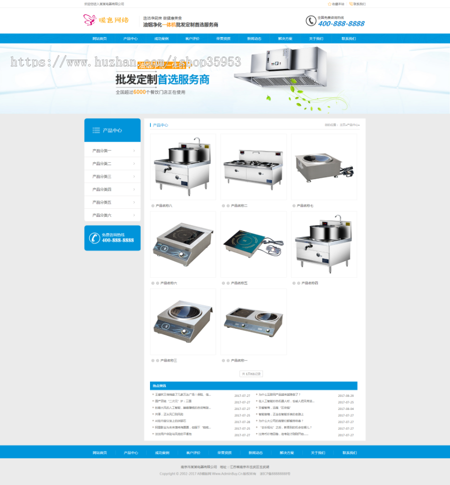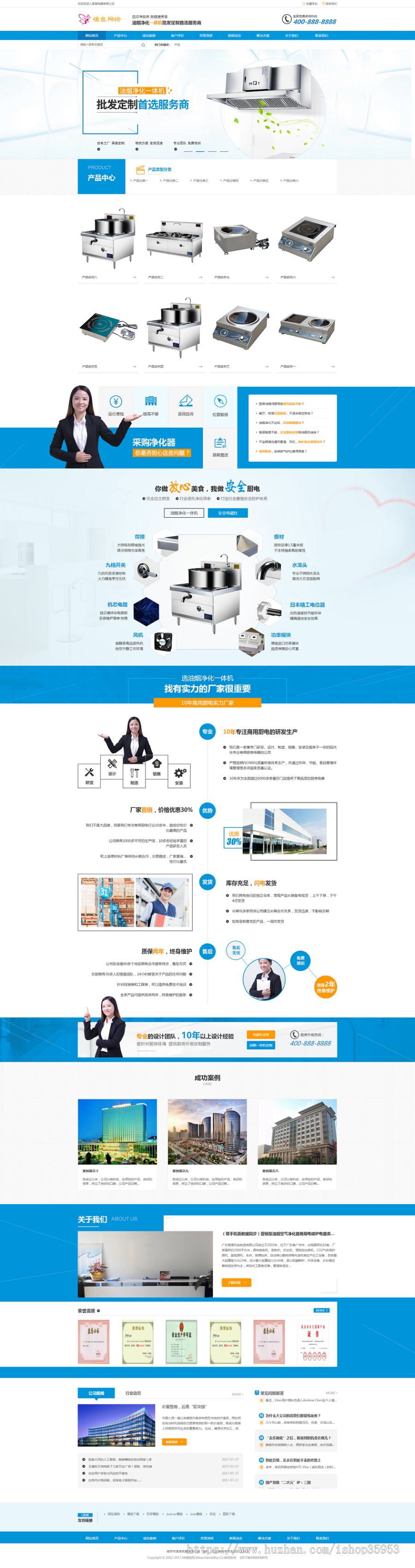 (带手机安卓版数据库同步)营销推广型厨房油烟空气净化机电磁大锅灶家用电器类织梦网站模板 厨房家电机器设备网站源代码