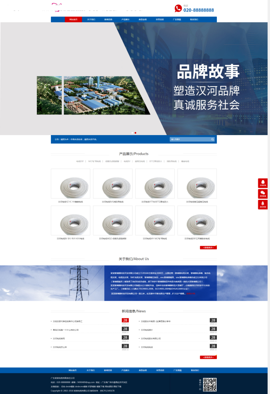 (响应式手机安卓版)响应式网站电线电缆类网址织梦cms模linux中grep板 HTML5基本建设深蓝色通用性公司网站源代码
