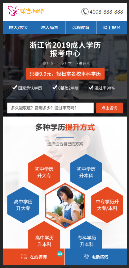 (带手机安卓版数据库同步)成考单网页页面程序流程织梦网站模板 成人高考百度竞价推广着陆页模版源代码