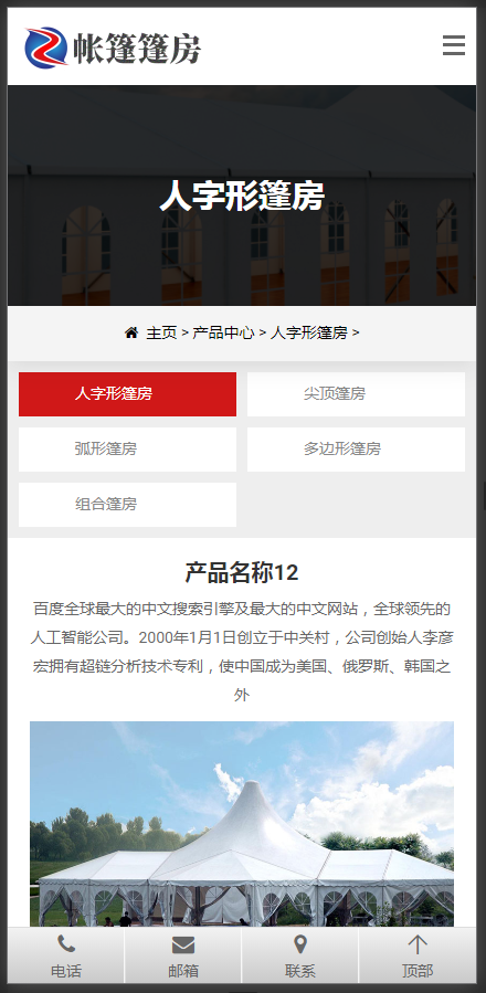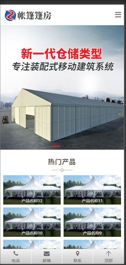 (带手机版数据同步)帐篷篷房建筑建材定制设计类网站织梦模板 工业帐篷大棚网站模板