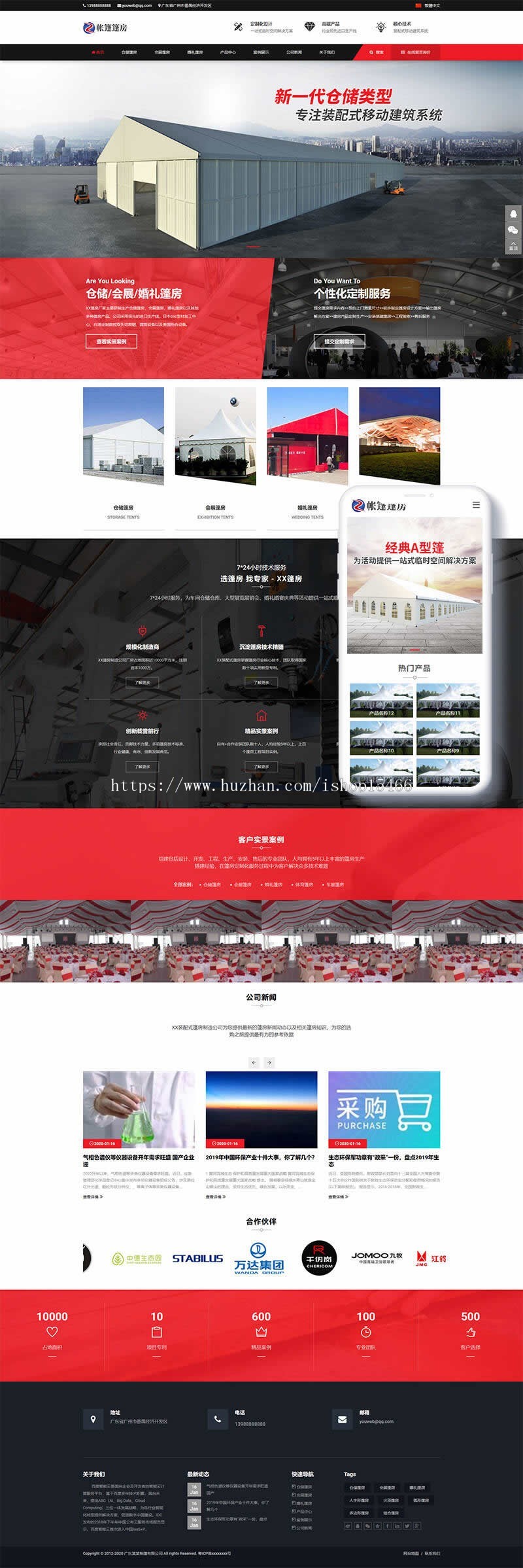 织梦内核开发的模板,该模板属于厂房、帐篷、篷房、建筑设计、定制类企业使用,