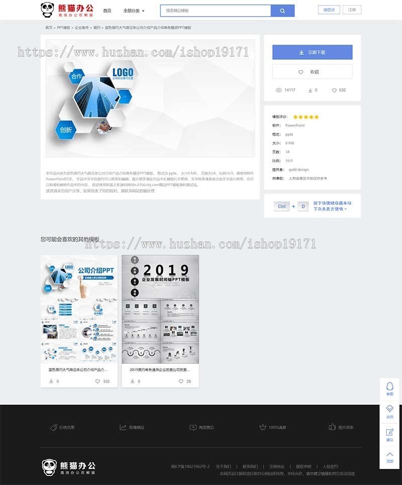熊猫办公图片素材站模板采用帝国cms7.5版utf-8开发,是一款非常高端的ppt模板,图片素材下载站模板非常适合大型图库下载站,配有手机端模板,支持自定义设置会员组,支持支付宝,微信扫码开通VIP,支持每日下载次数限定,支持QQ,微信登录接口。支持火车头数据采集,API数据回调,具体更多功能不一一介绍,用过帝国cms的朋友多知道帝国的强大!