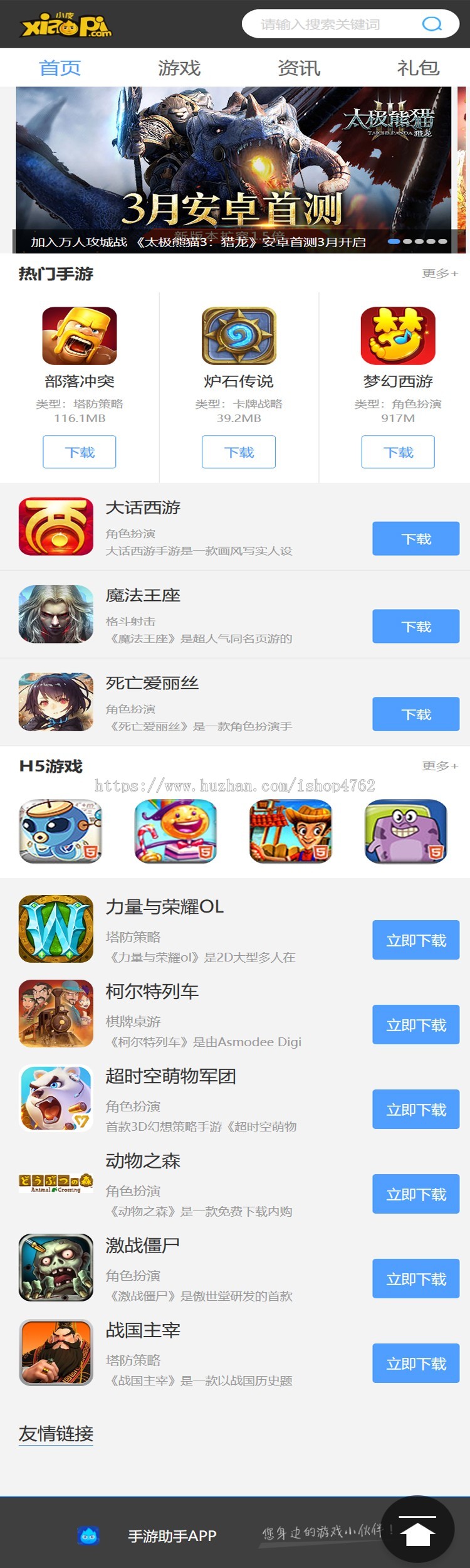 帝国CMS内核仿小皮手游网站模板,手游源码,手机游戏网站模板,带手机模板同步插件,送采集【整站数据】