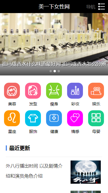 帝国7.5仿《美一下女性网》源码 女性护肤搭配美妆潮流网站模板,致力于打造国内最全的女性综合资讯站,为您提供美容护肤、发型设计、女性健康、时尚化妆、娱乐新闻、服饰搭配等女性潮流资讯。