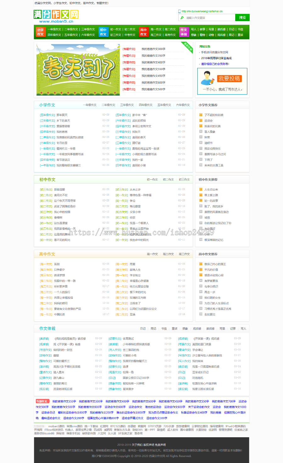 仿《满分作文网》源码 文章范文作文网站模板 同步生成+采集+手机站