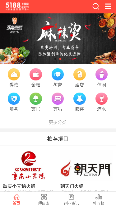 PHP仿《5188加盟网》开源源码,商家加盟连锁做生意创业大全整站源码带商家投稿+手机站,帝国cms7.5创业项目加盟门户站。