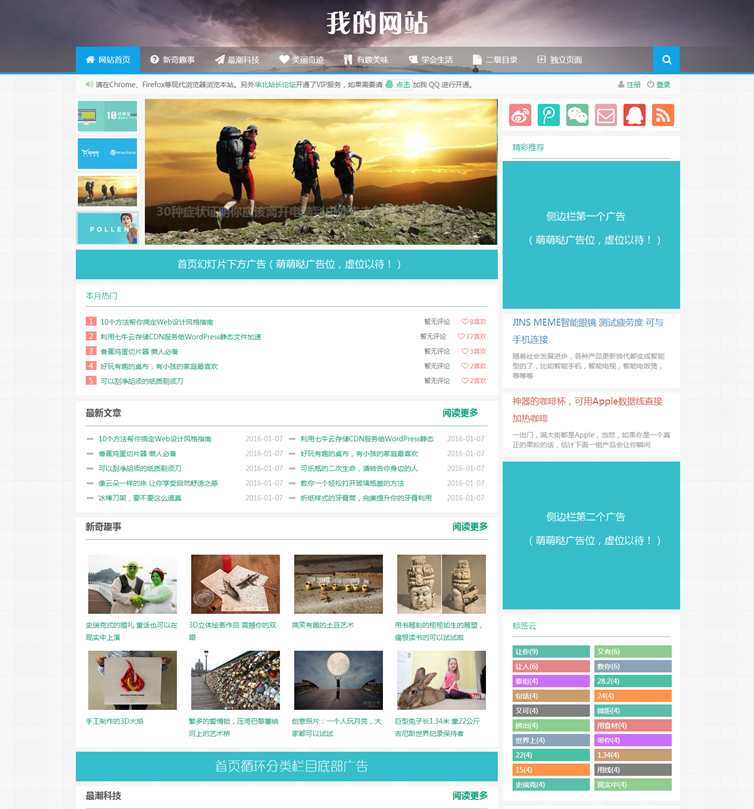 模板用帝国CMS7.2为核心。扁平化风格设计。高端大气上档次!适合个人博客、资讯、文章、图片类网站建设,自适应手机等平板设备!整站带数据,安装以后和演示站效果一样,源码二次开发简单方便,直接在后台栏目管理修改就行,是一款非常优秀的源码