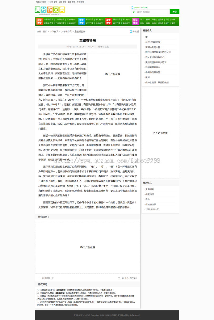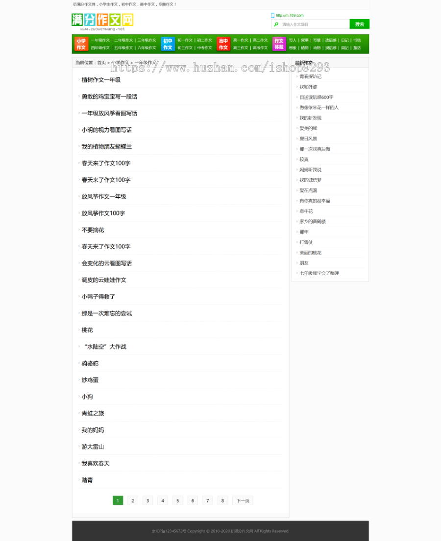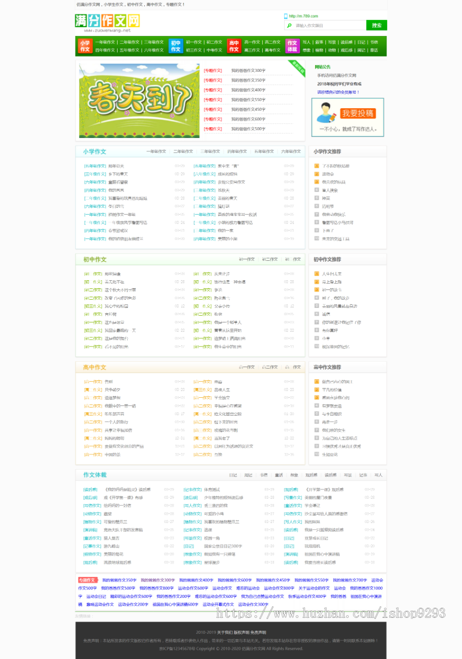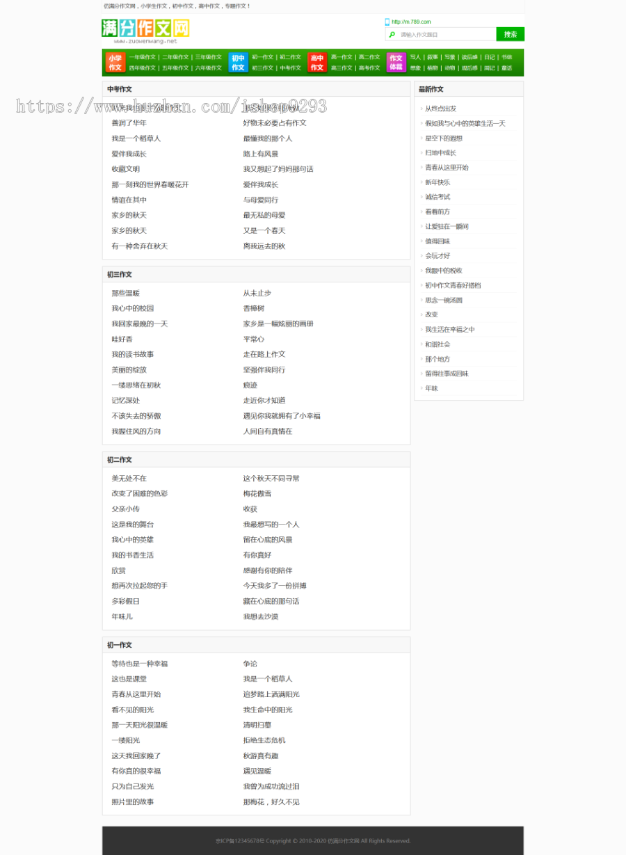 帝国cms7.5内核仿《满分作文网》源码 文章范文作文网站模板 同步生成手机站 赠送采集