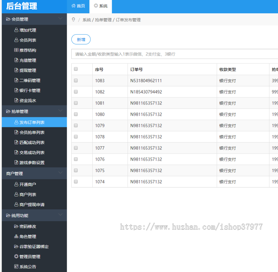 系统说明:该系统是按抛分流程根据免签支付、会员团队激励发展、后台可发布订单与完整的api接口对接商户相结合,各种功能模块可自由组合使用!