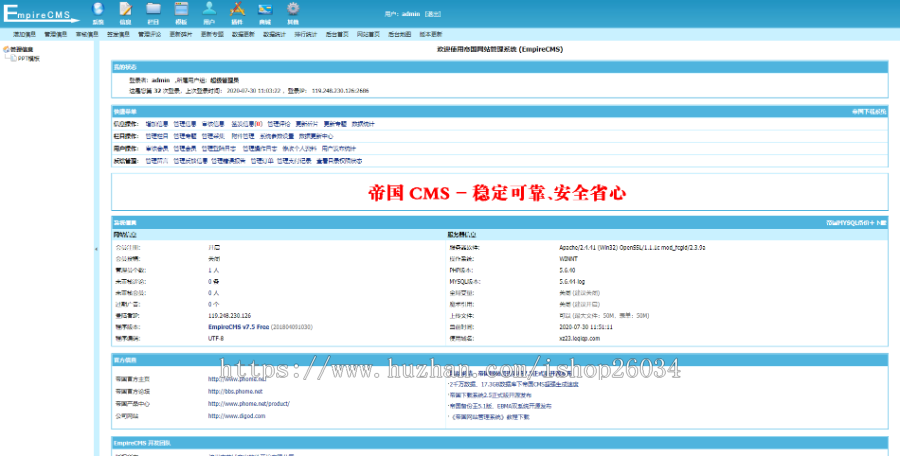 后台管理系统演试详细地址:http://xz23.leqiqp.com/e/admin