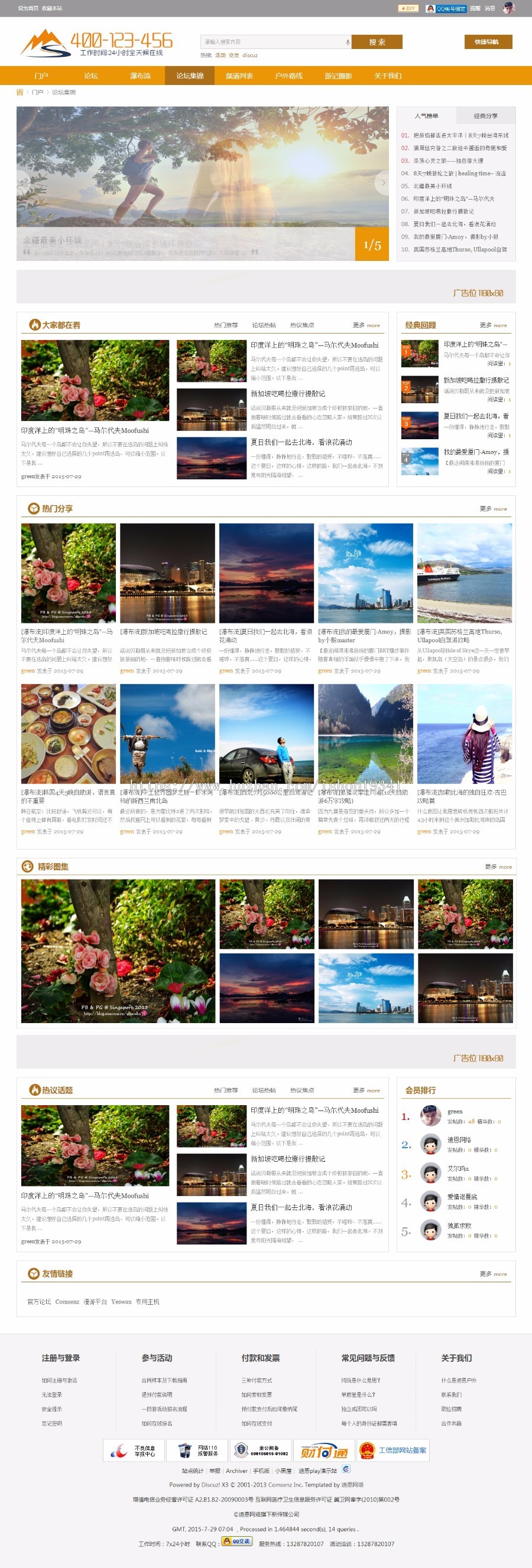 模板介绍:本模板采用时尚大气暖色配色,色泽柔和,界面精美。商业版包括门户,论坛,资讯频道,论坛聚焦,活动路线频道,游记摄影频道,关于我们频道等有关户外网站几乎所有页面。 1.版本支持:discuzx3.0版本,discuzx3.1版本,discuzx3.2版本。 2.模板论坛首页,列表页,内容页,以及文章页面数据采用DIY数据读取,方便新手老手运营以及后期维护,时尚大气简洁。模板添加了不少处动画效果,增加用户体验和粘度。 3.模板有很多细节都有体现,同时对官方模板文件结构和功能位置做了更为优化的设计处理,无论是在前端界面上还是在CCS代码优化上,兼容主流浏览器,ie8-ie10,谷歌火狐等。 4.模板对css3支持很多,用谷歌火狐以及ie9版本以上的朋友可以看到不错的动画效果。 |