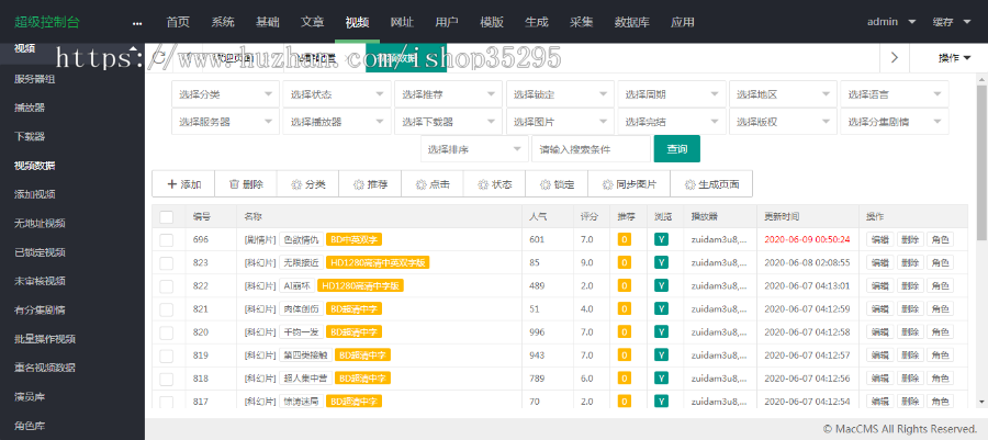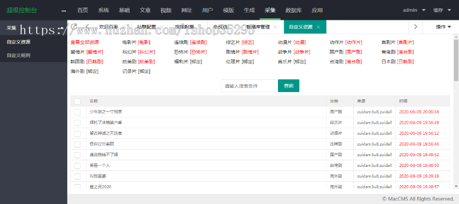 核心功能:试看功能,会员,卡密核销,各种支付接口,全自动采集,自动更新,五种主题,防洪功能,可接公众号,公众号自动回复等等。