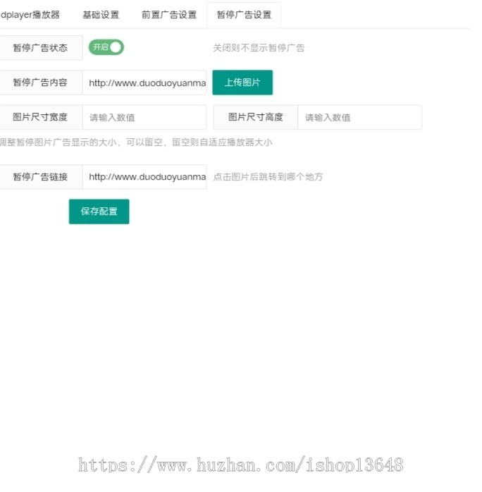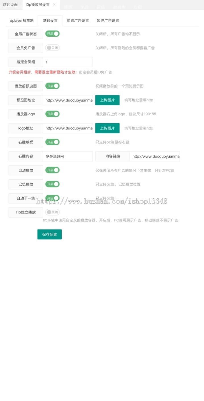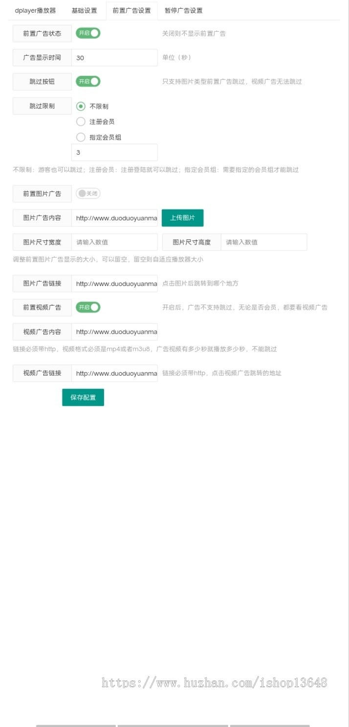 该程序广告系统强大,多广告位,后台集成播放器前置图片广告,视频广告,暂停广告。