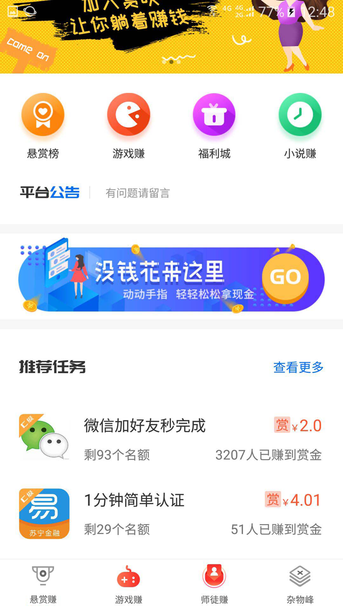 【每日任务悬赏任务】:以“懶人方式阅读文章就可以赚钱”为突破点迅速吸引住粉絲,让很多粉絲参加服务平台前期公布悬赏任务中,让服务平台每日任务总数极速提高。道别每日任务总数不够,粉絲没每日任务做的难堪局势。vip会员能够 在APP上任务发布悬赏任务,还可以在PC端上任务发布悬赏任务,