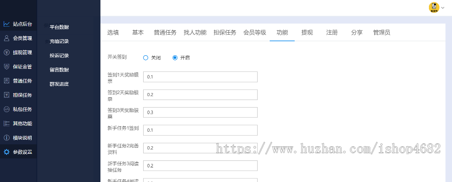 10.后台管理可设定上下架每日任务盈利分销模式、邀约客户升级会员返利