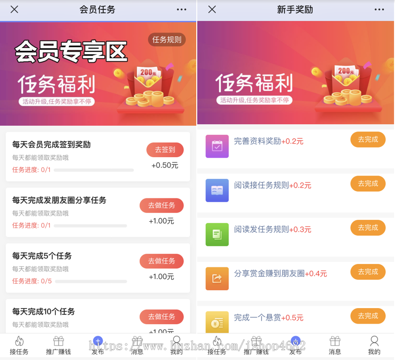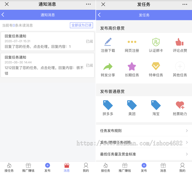 1.一般每日任务悬赏任务、前台接待客户能够任务发布