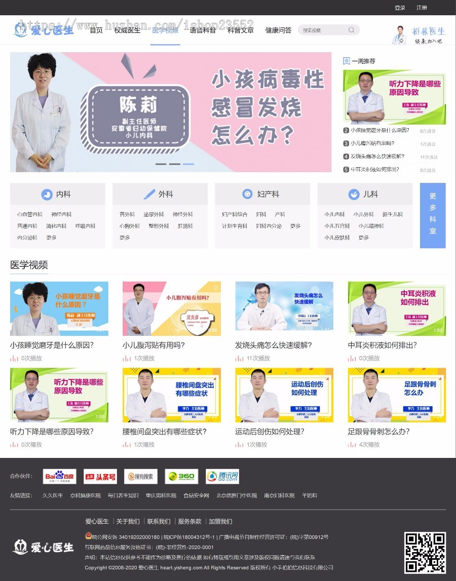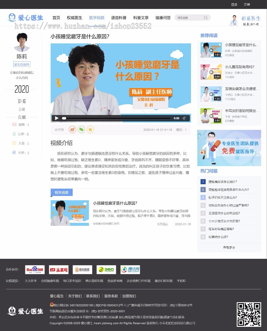善心医师健康教育知识门户网是一个权威性的诊疗趣味视频、视频语音、专业知识、健康医疗问答网站。包括全部源码和数据库查询,能够 立即布署到IIS中应用。