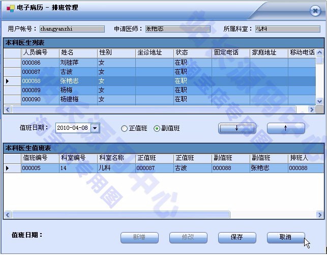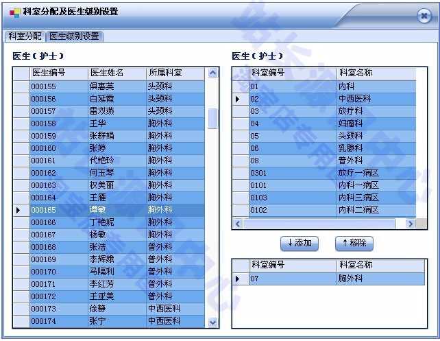 设定负责人医生、主治医生、主任医生、值勤医生的管理权限。
