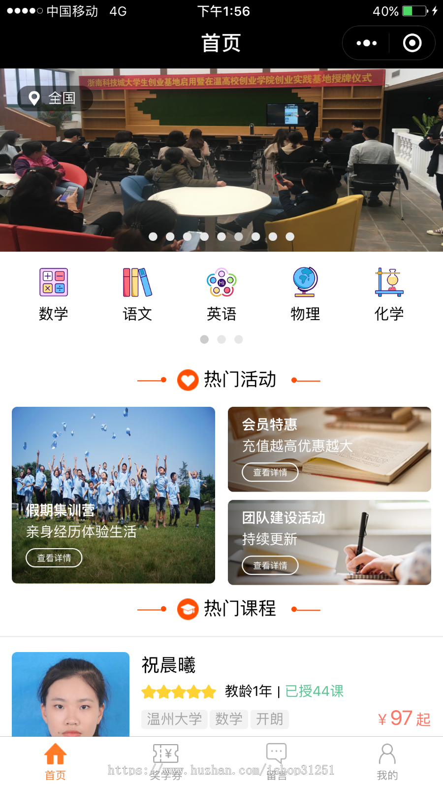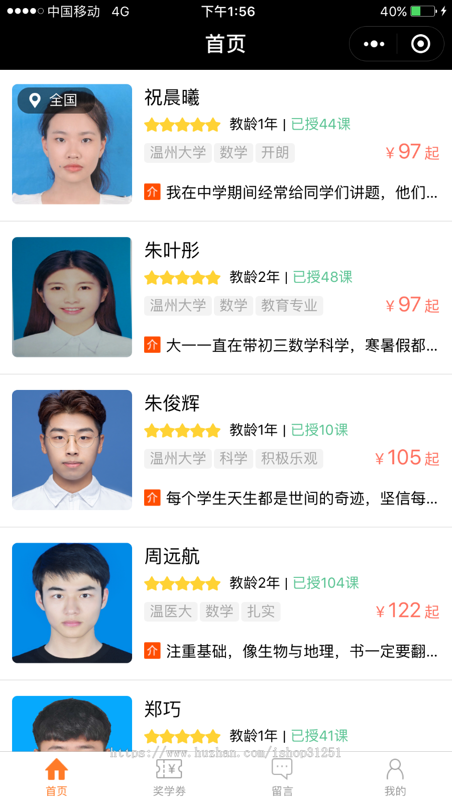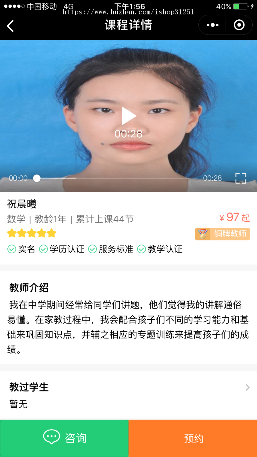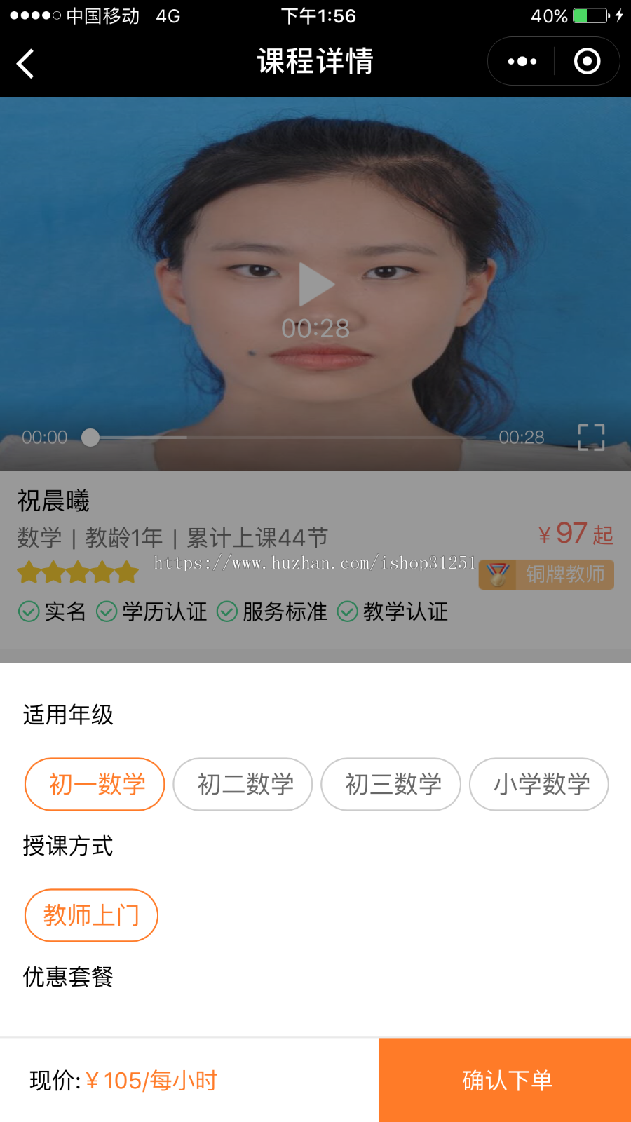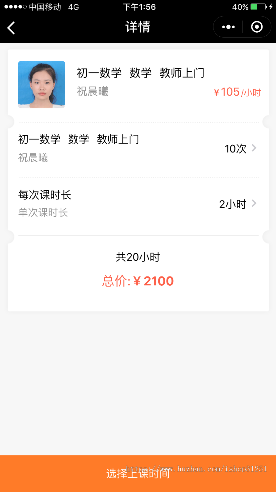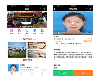 展现服务平台师资队伍,老师信息内容,客户可立即在服务平台提交订单,挑选套餐内容和老师学时、分配老师上课时间(全自动分配)