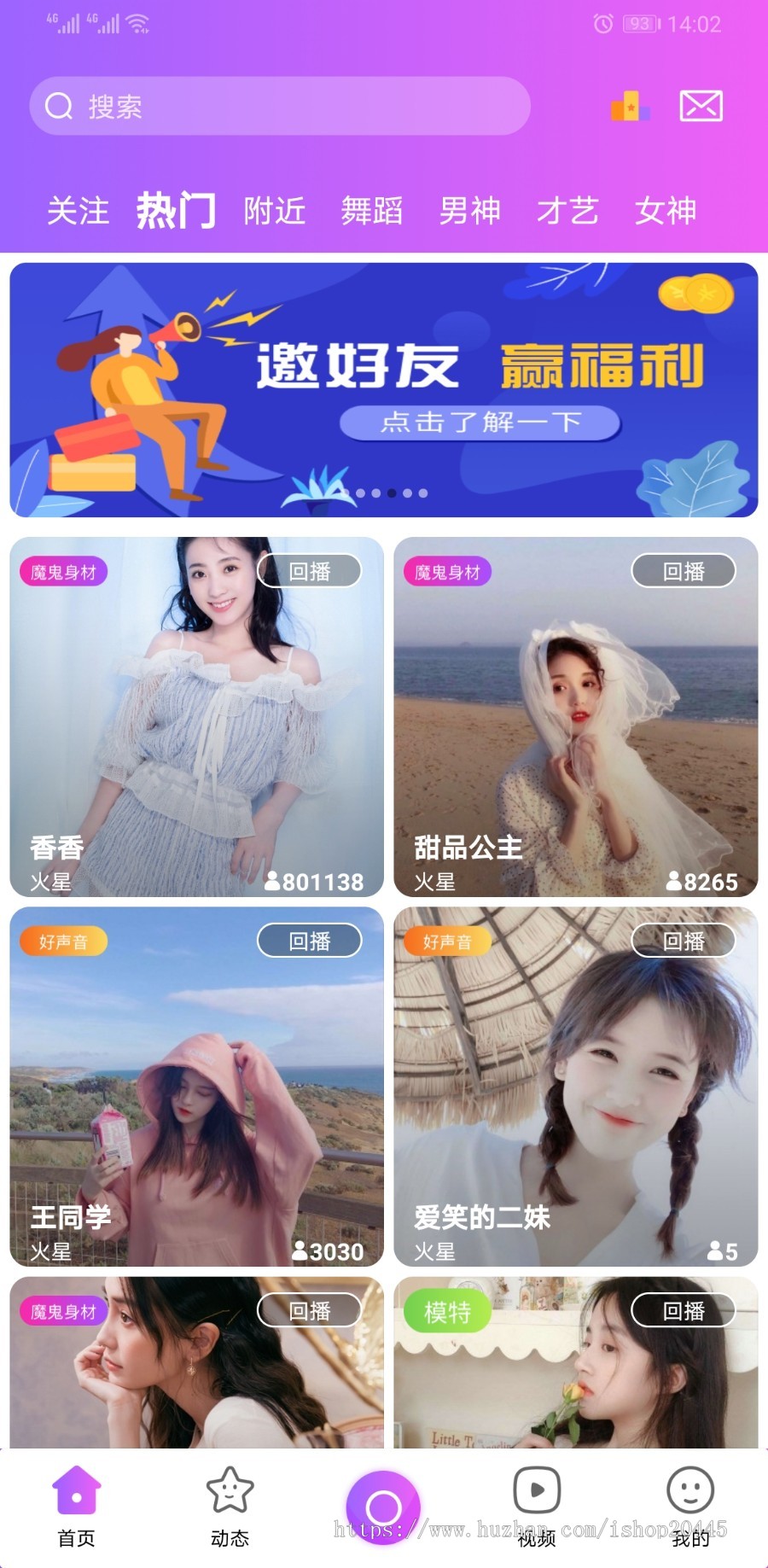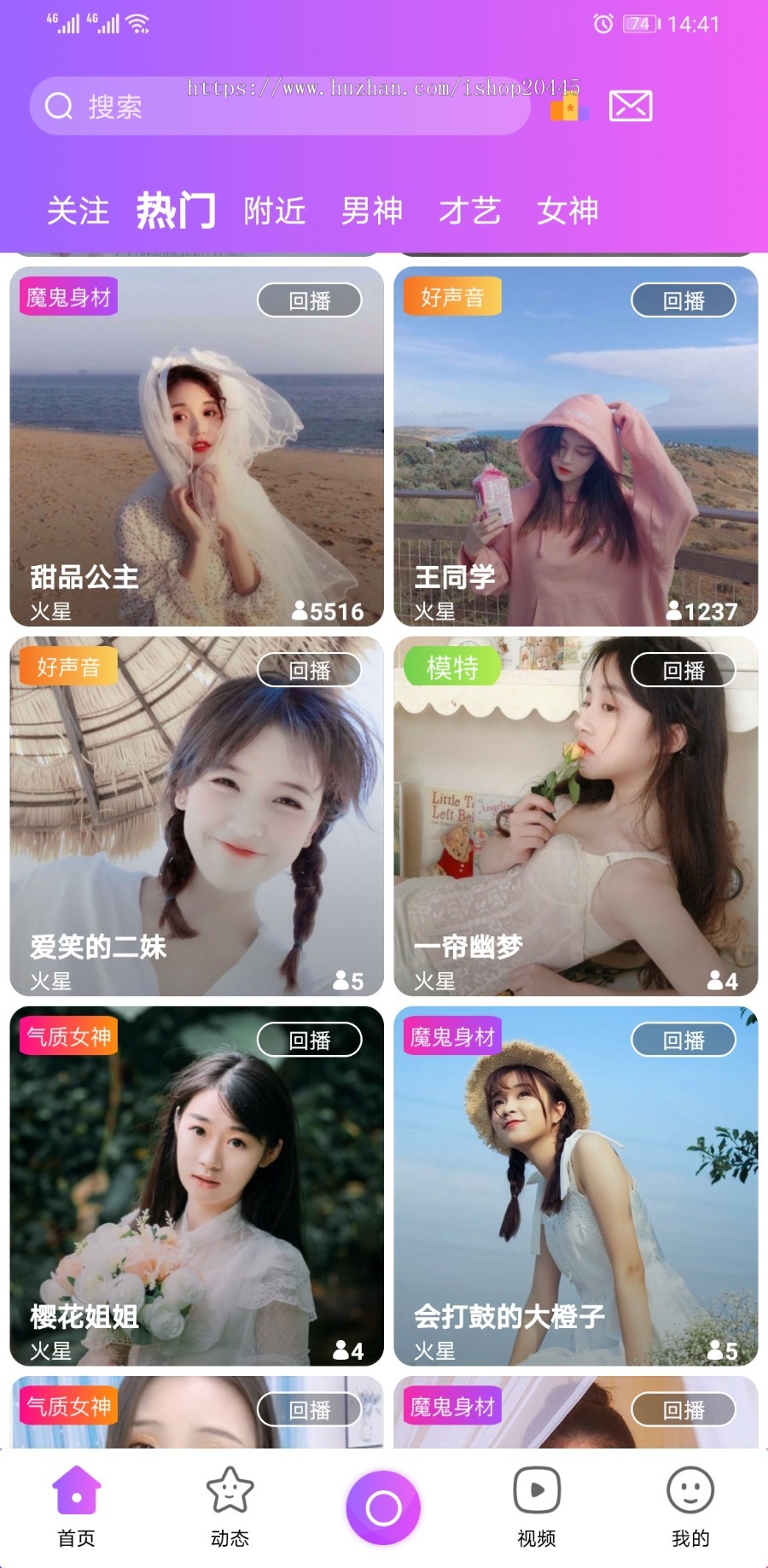 标志选择项:在关心、受欢迎、周边四个目录后面有才艺表演、女王、游戏娱乐、一对一等选择项标志,后台管理可依据必须来开展改动、删掉。