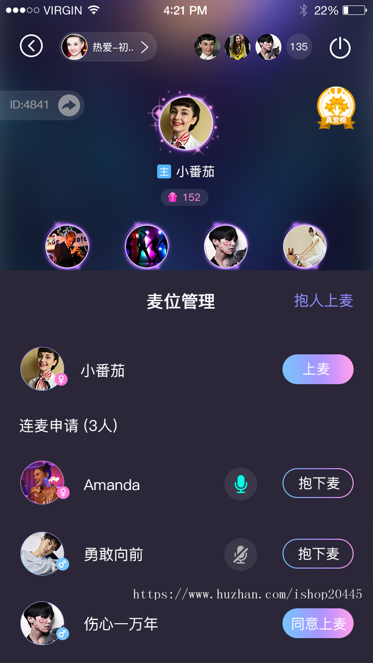 能够连麦直播视频语音、视频弹幕直播间评价、送礼、私聊、入场动画特效等作用。
