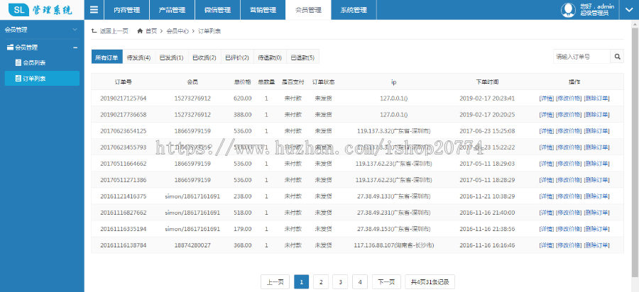 3、后台框架可适用扩展二次开发,內容智能管理系统、商品智能管理系统、vip会员、订单信息、微信付款系统软件、支付宝付款系统软件这些作用都会后台管理早已完成