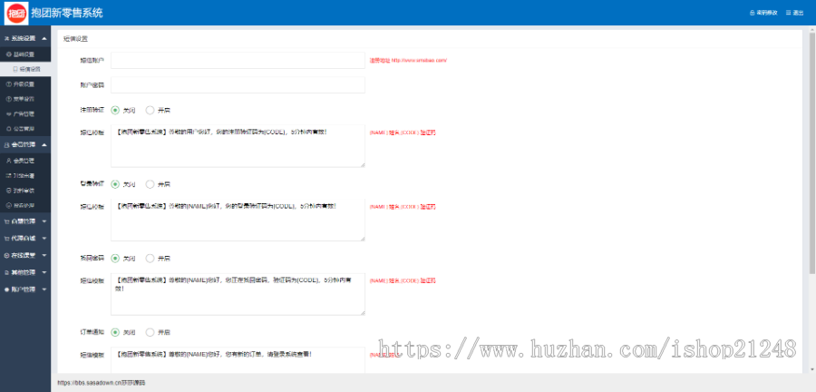 2、带短消息申请注册,短信提醒(已连接好,键入账户密码就可以了)