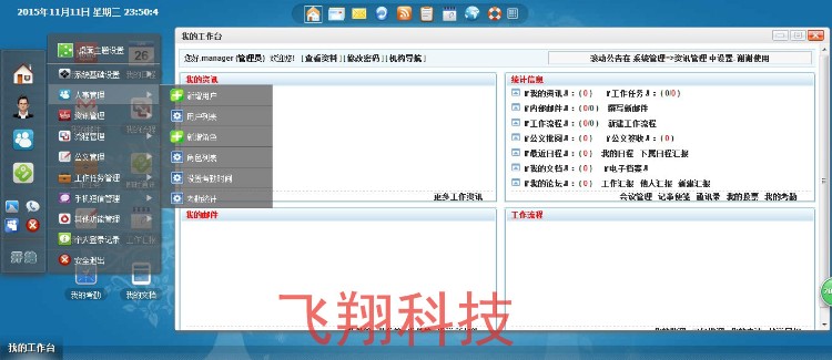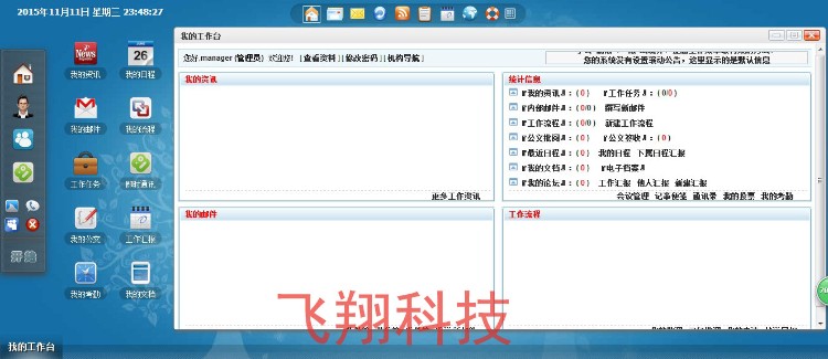 本人办公室:內部电子邮件、Internet电子邮件、短信内容、手机信息、公示通告、新闻报道、网络投票、本人考勤管理、行程安排、工作日记、工作情况汇报、手机通讯录、本人铁皮文件柜、操作面板