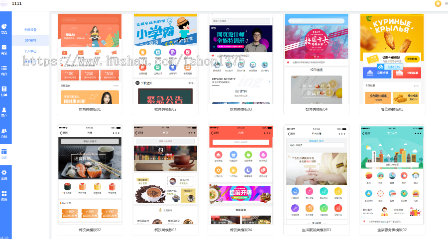 站点管理(我的模版、模板市场、主页管理方法、diy网页页面、小程序跳转、嵌入网页页面、用户中心、微信小程序网页页面、基本参数)