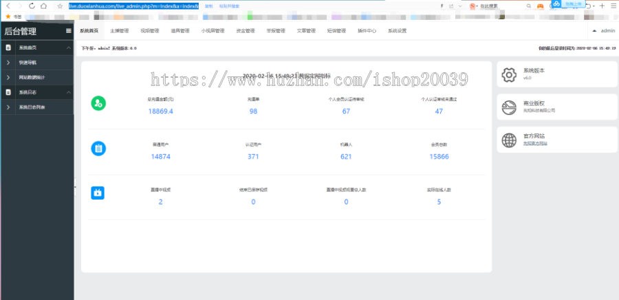 后台管理演试:http://live.duoxianhua.com/live_admin.php?m=Index&a=index&