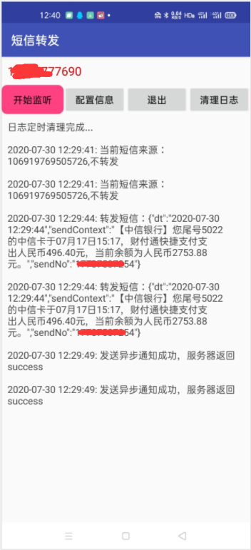 作用表明:1.接到金融机构短信转发到你的回调函数详细地址