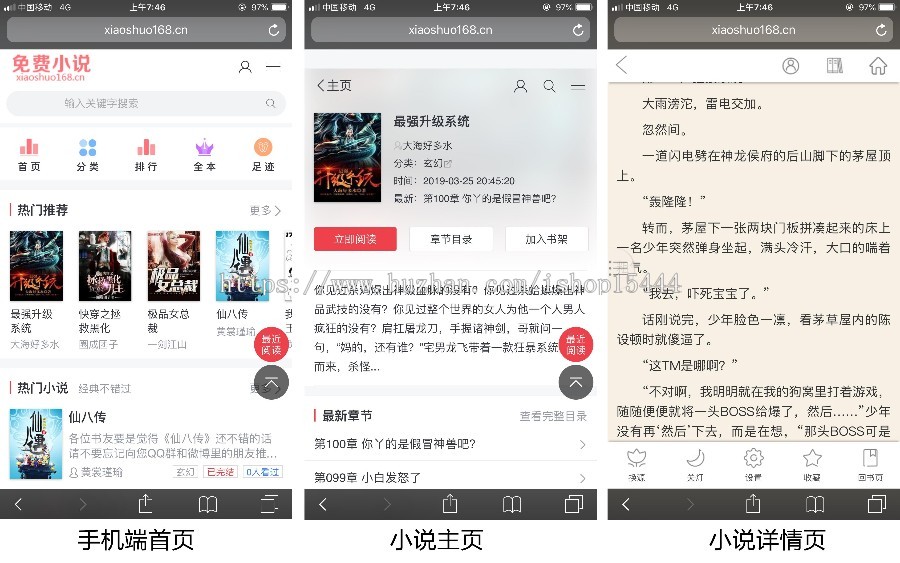 PC端演试详细地址:http://www.xiaoshuo168.cn