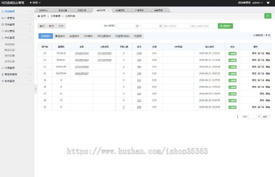 后台管理自身能够加上视頻,改动广告宣传!注册会员填写邀请码!