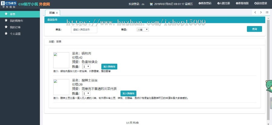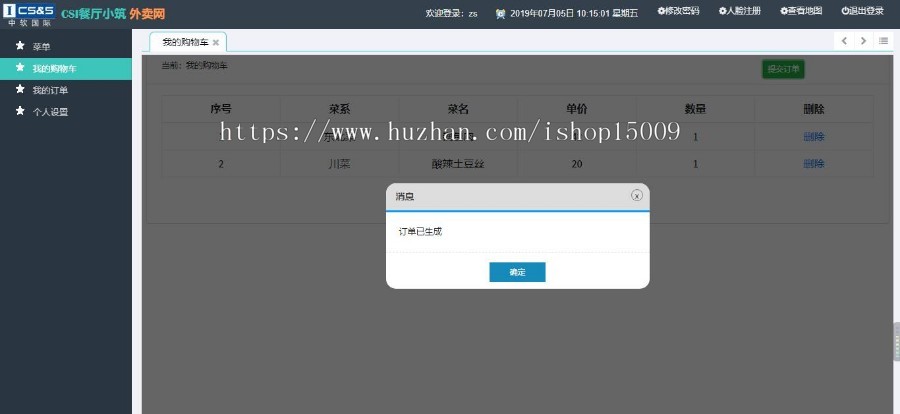 加入购物车:加上到加入购物车的菜肴,下单到后台管理确定