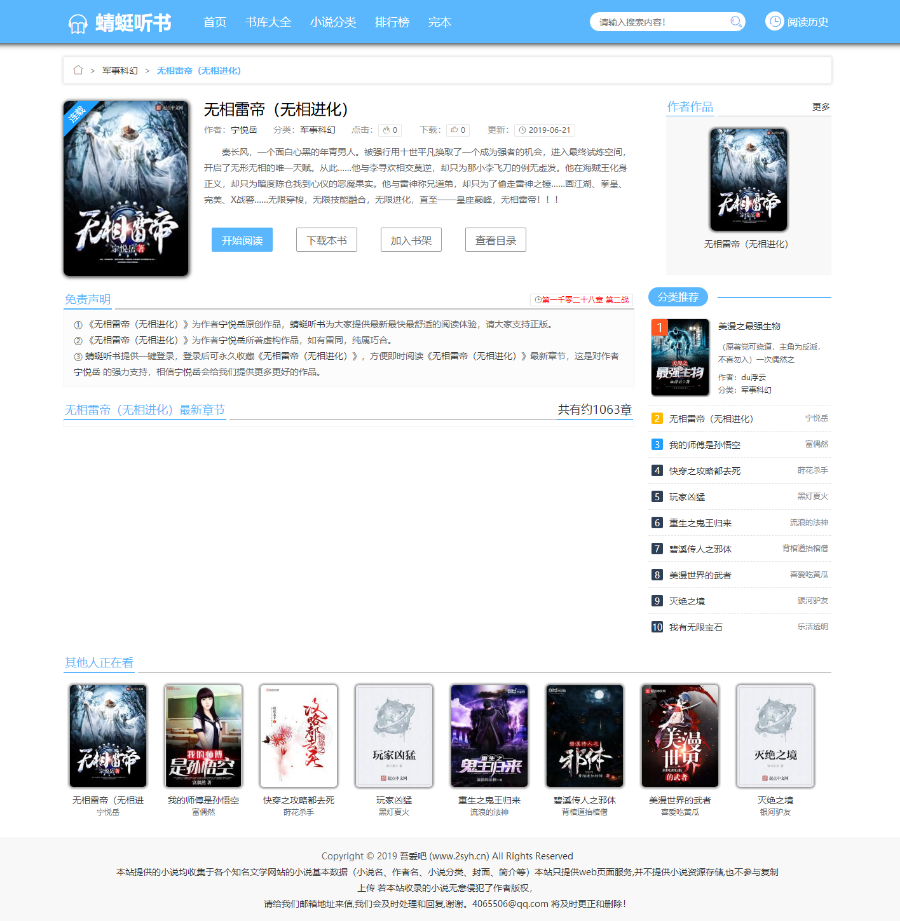 模版分成PC和wap 全是做了SEO的,模版空气高档次,内置TXT免费下载、相互配合听小说,基础早已贴近极致了。