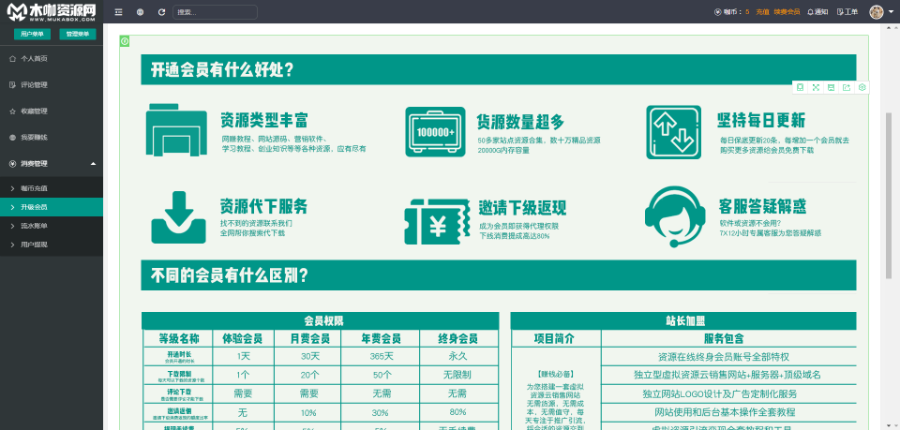4.您能够将网络推广至随意地区,以vip会员启用、資源售卖的方法来赢利