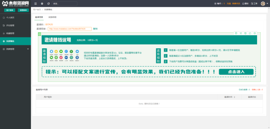 4.邀约佣金作用,每一个客户都有着自身的邀约连接,能够设定新用户注册返利,邀约消費返利