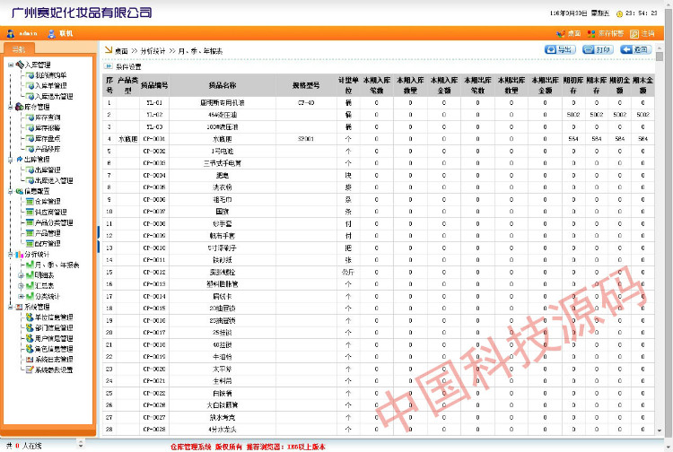 5、剖析统计分析: 月、季、年报表 统计表 进出库清单 仅进库统计表 仅出入库统计表