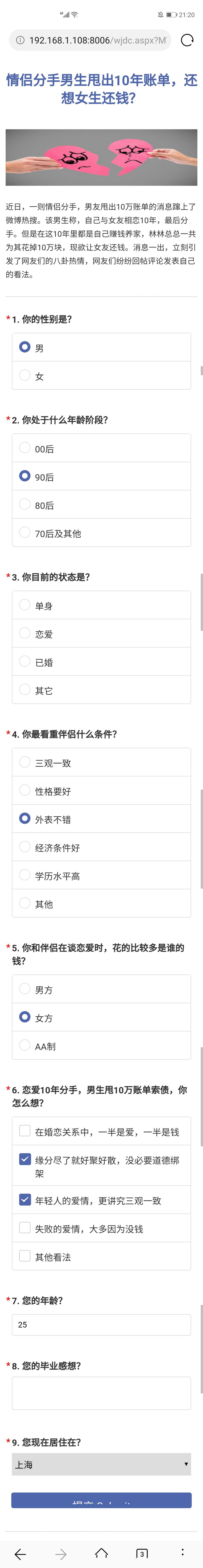 5、问卷调查:其他客户根据共享的连接能够开展网络投票。