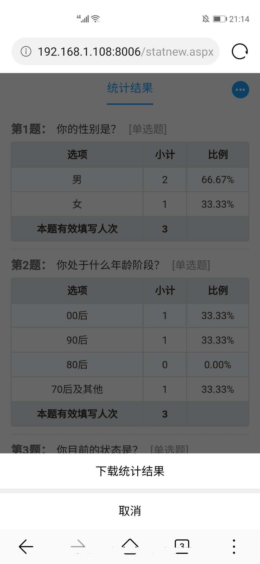 4、查询結果:问卷调查結果查询及免费下载Excel作用。