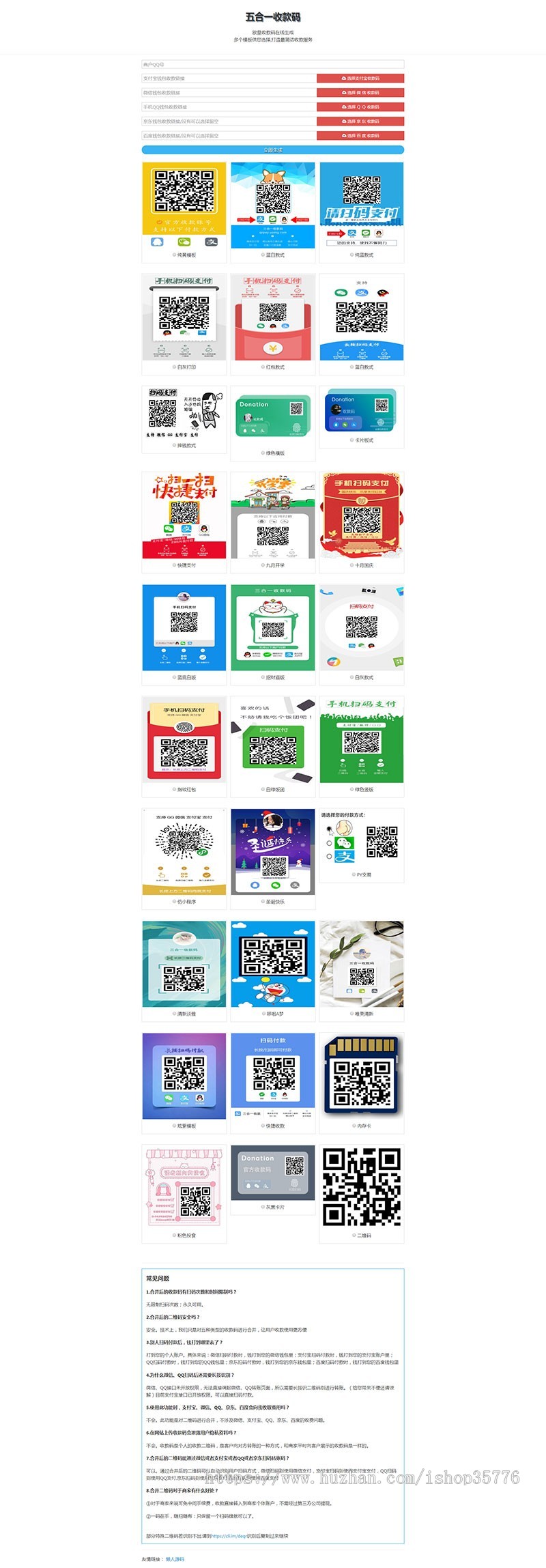 适用微信付款,支付宝付款,手机上qq付款,京东钱包,百网址宣传单页模版度钱夹,五合一收付款,将其二免费中文网站模版二维码合拼为一个二维码,不用服务费,适用的qq头像,呢称分辨