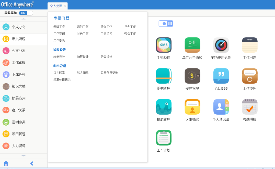 a、审批流程图(在建工作中,我工作,待办事项工作中,已办工作中,工作中查寻,密送工作中,工作中监管,存档工作中,工作中授权委托)